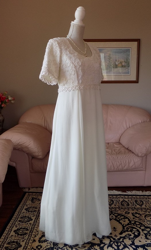 Beaded Chiffon Informal Wedding Gown with Short Sleeves in stock size 16