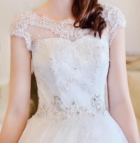 This chic Wedding Gown of Satin and Tulle has a pretty illusion neckline, a natural waistline which has elegant beading, lace appliques on the bodice, skirt and train as well as a lace up back closure, and the skirt of this fabulous Wedding Dress is made of embroidered tulle This Wedding Dress has panache and style, and would be lovely for a Wedding where the Bride wants that "Wow Factor" One of our great value Satin and Tulle fabric wedding dresses - no one will guess that you have an amazing Wedding Dress for such an affordable price! Shape Style: Princess / Ballgown Click here for Size Chart Brides who purchased this gown, also bought ...