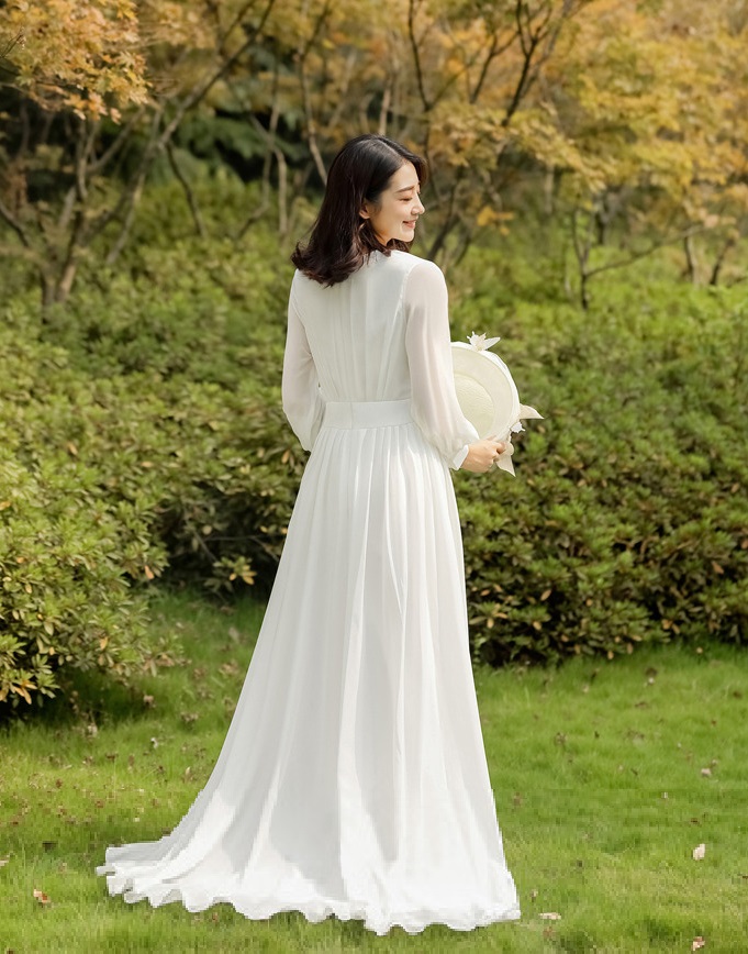 This elegant and modest gown is made of flowing Chiffon and is feminine and beautiful and is floor length with a sweep train Shape Style: A-Line Sleeve Length: Long Sleeves Click here for Size Chart Brides who purchased this gown, also liked ...