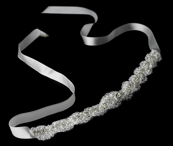 This Classic Ribbon Style Bridal Headband is perfect for the bride, flower girl, or bridesmaid and would also be ideal for Prom or Quincenera celebrations The top ornament features lace, peppered with faux Pearls, bugle beads, and Rhinestones The headband ties beneath the hair with two ribbons. Size: Design is 1" wide and 11" inches long with 18" of satin ribbon on each side Available Colours: WhiteClásico del estilo de la cinta Cinta de novia, Headband nupcial clássico fita Estilo, Classique bandeau de ruban de mariée de style Brides who bought this Ribbon Headband, also liked