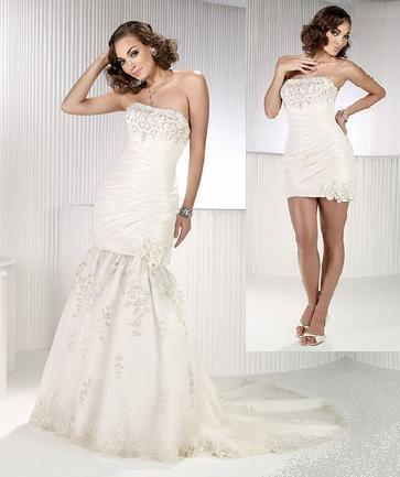 This Convertible Embroidered Satin Fit and Flare Wedding Gown has a corset-style lace-up back and is perfect for an elegant wedding ceremony and the skirt is removable for your reception Neckline Style: Strapless / Modified Sweetheart Neckline Dress Length: Floor Length / Knee Length Convertible Material: Satin Colours: White, Ivory, Champagne Contrasting Colours: White, Black, Red Click here for Size Chart Click here for Measurement information Belles robes pour la mariée et abordable, szép és olcsó ruhák mennyasszony számára, vestidos bonitos e acessíveis para noiva, abiti belli e conveniente per la sposa, Annalisa Brides who purchased this gown, also liked ...
