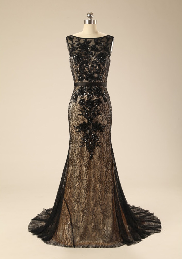 Daring Lace over Satin Sheath Gown