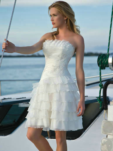 This Darling Knee Length Dress in Organza and Lace, has embroidery on the bodice, and frills on the bodice and skirt Available in White and Ivory, this dress would be perfect for any relaxed Summer Wedding, or for Bridesmaid's dresses The cost of this charming short dress is $275.00 and includes delivery! Brides who purchased this gown, also liked .....