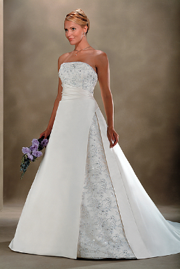 This charming Embroidered Satin Strapless Wedding Dress is floor length and has an elegantly embroidered neckline and is beautifully styled With delicate corset style lace-up back and simple train, this Wedding Gown is a lovely elegant design Price includes shipping on this Wedding Dress which is regularly priced at $425.00, and which is currently on sale, so any bride can have the gown of her dreams, and still stay within her Wedding budget A short video on how to Lace your Wedding Gown Shape Style: Princess / A Line Style Neckline Style: Strapless Neckline Dress Length: Floor Length Click here for Size Chart Brides who purchased this gown, also liked .....
