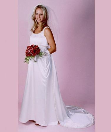 This Empire Line Satin Maternity Gown for Bride is simply elegant and this pretty sleeveless dress is romantic and charming for the bridal mother-to-be Fully lined, well made with comfortable shoulder straps, a built-in bra and this gown can also be made with either a zipper back or lace-up back closure This refined Bridal Gown has a romantic court train, and would be perfect for a mother-to-be who wants to look traditional and stylish on her Wedding Day The cost of this gown includes shipping to you - this lovely Maternity Wedding Gown is a bargain! elegant fødselspermisjon brudekjole, robe de mariée de maternité, belle robe de mariée, vestido nupcial de maternidad hermosa, bellissimo abito da sposa di maternità, elegante abito da sposa di maternità Brides who purchased this gown, also liked ...