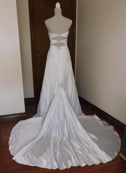 This amazing gown is full length is size 4 and has a beautiful 2-clasp back and has to be seen to be believed!
