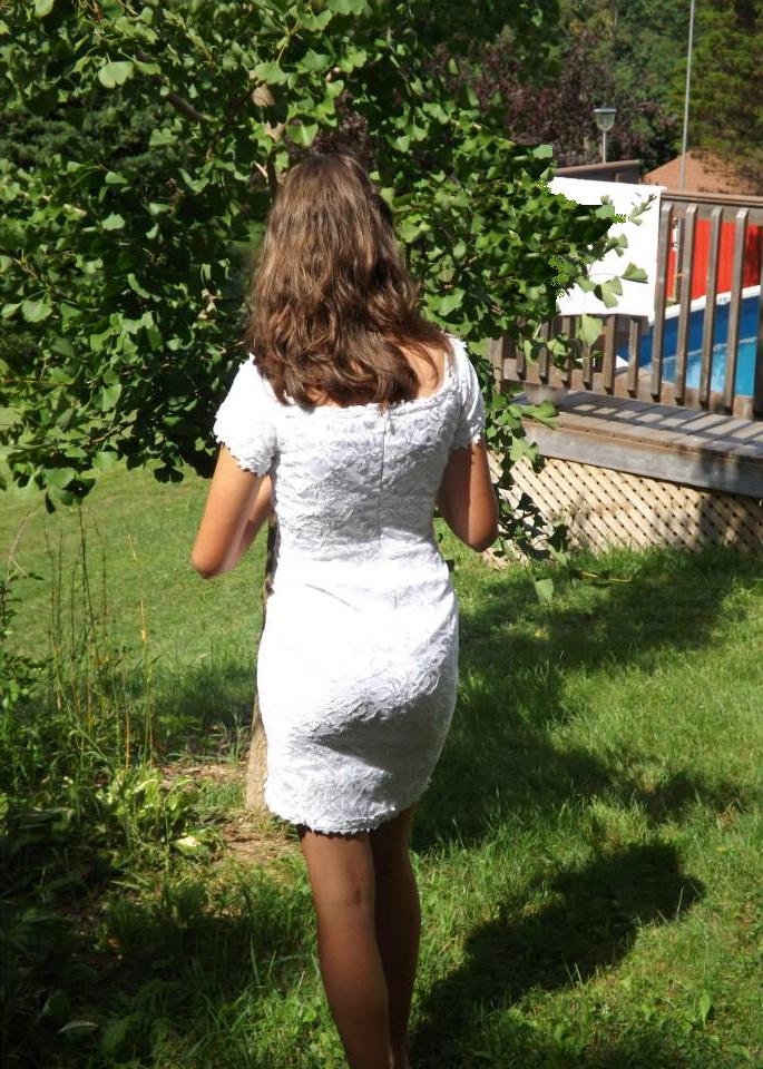 It has a detachable lower skirt, allowing it to be worn as a floor length wedding dress, or as a shorter cocktail length dress The gown is a size 6, the model shown is 5' 7" tall and is a small size 6 This dress is in excellent conditionand would be lovely for a bride who is getting married in a Church, Chapel or any wedding ceremony, and this lovely Wedding Gown would be ideal for a Garden Wedding A matching two-layer veil or feather fascinator is also available This gown has been worn once and is available for a 7-day rental for $75.00, and requires a $125.00 security deposit (total of $200.00), the balance of which will be refunded when the gown is returned in good condition. Please contact 519-777-0865 or use our Contact Us Form for more information and to check availability Available for rent at our West Elgin location, where this gown, and all our other bridal gowns, can be seen and tried on Bridal Gowns also for rent .....
