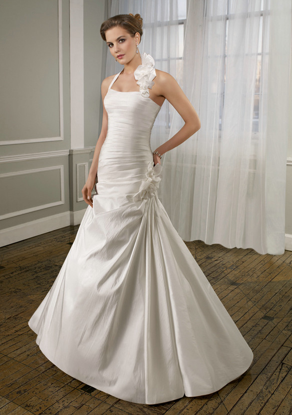 This Halter Neckline Satin and Taffeta Wedding Dress, shown here in Ivory satin wedding fabric, has a beautiful asymmetrical design with a floral details on the shoulder strap and hip With an elegant corset-style lace-up back and simple sweep train, this gown would be suitable for any Wedding This is a lovely Bridal Gown for $345.00 including delivery, one of many from our online bridal gown store! Shape Style: Fit and Flare Satinat vestit de bola, Satin Wedding baljurk, Satin Hochzeit Ballkleid, Abito da sposa in raso sfera, coleção de cetim e organza vestido de noiva, voyage 6711, colección de satén y organza vestido de bodas Brides who purchased this gown, also liked ...