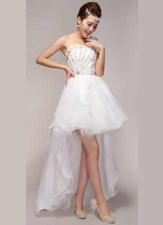 This High-Low One-Shoulder Organza Wedding Dress is beautifully made with an elegant bodice with beading, natural waist, a built in bra and fully lined bodice This style of gown is ideal for a Destination Wedding, or a Civil or Garden Wedding as it is beautiful and Bridal, and the brush train touches the floor at the back From the flattering neckline, to the back of this elegant dress, this lovely gown has a charming look that is flattering and feminine Price includes free shipping on this bargain Wedding Dress! Neckline Style: One Shoulder design Vestido de novia de tafetán, robe de mariée de l'organza, organza et la robe de mariage de taffetas, plage robe de mariée en organza, organza e taffettà abito da sposa, spiaggia abito da sposa di organza Brides who purchased this gown, also liked ...