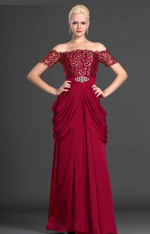 Lace and Chiffon Elegant Off-the-Shoulder Gown