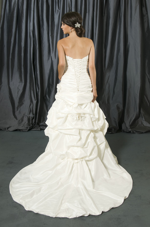 This figure-flattering Mermaid Style Strapless Taffeta pick-up Wedding Gown has a beautiful sweetheart neckline on the beaded bodice, an asymmetrical gathered skirt, corset-style lace-up back, and a sweep train This lovely Wedding Dress is elegant and affordable at $325.00, this is a bargain Wedding Gown As one of our wedding Taffeta fabric Wedding Dresses, this charming gown will impress your guests and family! Shape Style: Trumpet / Mermaid Brides who purchased this gown, also liked ...