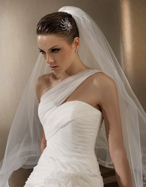 One Shoulder Satin and Organza Euro Style Wedding Dress