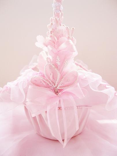 This Pink Wedding Flower Girl Basket is trimmed with pretty pleating and an adorable organza ruffle and accented with small faux-pearls, and would be charming for your little Flowergirls! Colors: Pink Size: 11.5" tall and 10" wide