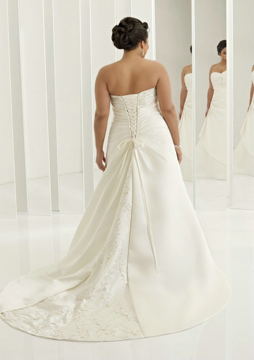 This Plus Size Sweetheart Neckline Embroidered Satin Wedding Gown is sure to be a popular Wedding Dress, and is available in a full range of beautiful colours The Strapless neckline is flattering and feminine, lace-up back, has exquisite embroidery on the bodice, skirt and train, and this Wedding Dress is one of our bargain queen size bridal gowns Regal and befitting an Princess, this lovely Wedding Dress has an elegant lace-up back and is now available in all sizes up to 30 US For directions on how to Lace your Wedding Gown correctly, see this short instructional video Shape Style: A-Line / Princess hermoso vestido de raso bordado para la novia, mori lee julietta, lindo vestido de cetim bordado para a noiva, belle robe de satin brodé pour la mariée, mori lee bridals, schöne bestickte Satin Kleid für Braut Brides who purchased this gown, also liked ...