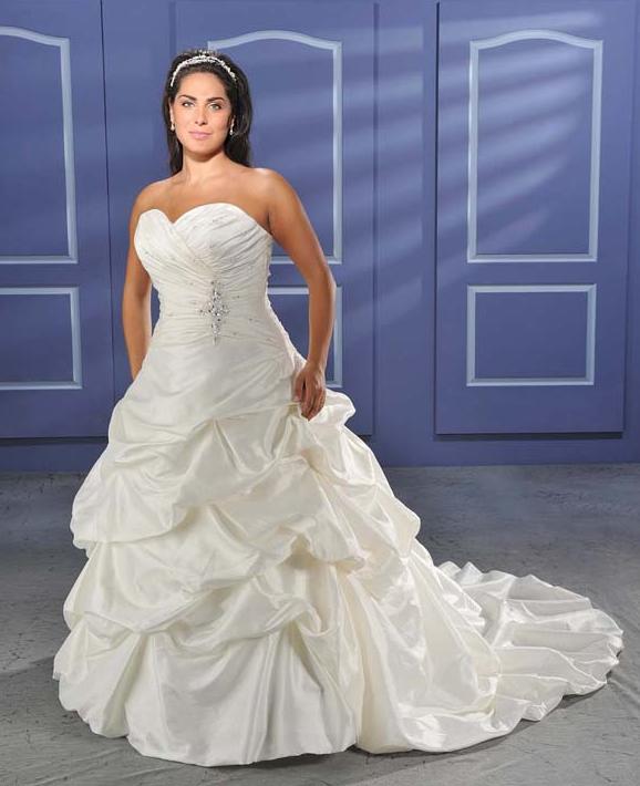 This Plus Size Taffeta Ball Gown has a flattering sweetheart neckline and pick up skirt, with a cross-over bodice and elegant waist detail The feminine and this lovely garment has a beautiful ballgown style, a bargain for $315.00 including delivery! Well made and charming, this bargain Wedding Dress has an elegance which will make your Wedding Day special! Shape / Style: Ballgown Fabric: Taffeta Colors: Ivory, White Light Champagne Mariée taille plus de robes, queen size bruidskleding, Bonny 1010, baratilyo tela ng tapite damit-pangkasal, bargain tafti hääpuku, robe de mariée en taffetas de négocier, afacere tafta rochii de mireasa Brides who purchased this gown, also liked ...