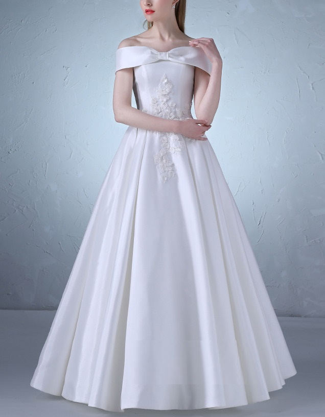 Off-the-Shoulder Satin Lace-Up Wedding Dress