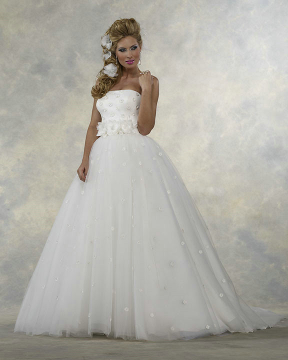 This Satin and Tulle Strapless Wedding Ballgown is a beautiful dress for the money, and this charming Wedding Gown is only $315.00 with free delivery in the USA, Canada and Europe - other countries may have a small additional charge With a pretty strapless neckline and wonderful details on the bodice, full ball-gown style skirt, and satin rosettes at the waist, this is a lovely gown Affordably priced, this lovely Bridal gown is inexpensive, showing that it is possible to have a Cheap Wedding Dress without sacrificing beauty and style! Shape Style: Ball Gown Brides who chose this dress, also liked .....