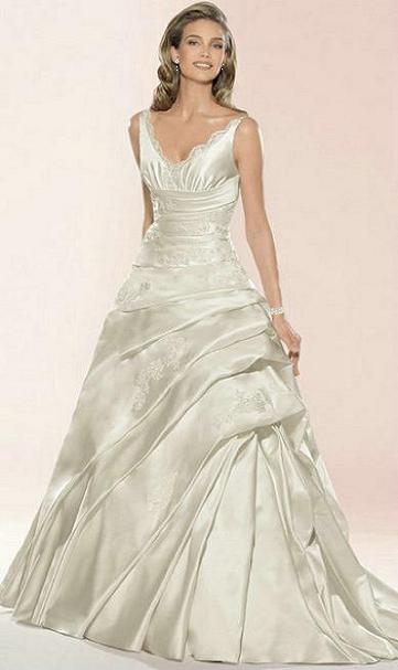 This Satin Brocade Wedding Gown with Lace has an alluring v-neckline with comfy shoulder straps, side gathers and pretty under bust details and is a charming feminine design A button-up back, Spaghetti straps and a Chapel length train, make this gown special, and it would be gorgeous for your Wedding Day This gown is available in 24 lovely colours including White and Ivory! Costing $352.50, this is one of our well priced Satin Wedding Dresses from our collection of elegant Euro-styled Bridal gowns Style: A-Line / Princess Neckline Style: Spaghetti Straps mooie bruidsjurk, mooie bruid jurk, robe de mariée en satin, robe de mariée belle, la robe de mariée jolie, satin abito da sposa, abito da sposa bellissimo, abito da sposa carina, vestido de cetim de casamento Brides who purchased this gown, also liked ...