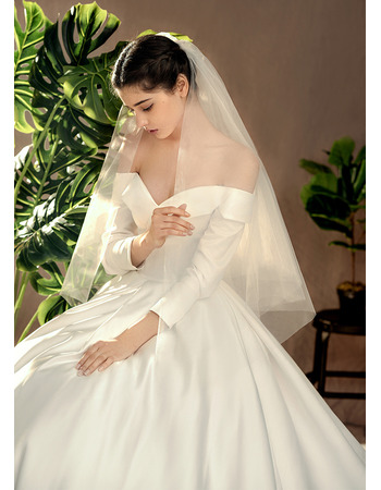 This beautiful Satin off the Shoulder Wedding Gown has a lace-up back and long sleeves, and this gown will be perfect for the elegant and dignified Bride From the charming off-the-shoulder neckline, to the beautiful train, this lovely gown has an elegance that is flattering and feminine This beautiful Wedding Dress is from our selection of Gowns under $400.00, so any Bride can have a lovely Gown at a Bargain price! Neckline Style: Off the Shoulder vestido de raso con tirantes para la novia, mori lee, robe de satin avec des bretelles pour la mariée, abito di raso con spallacci per la sposa Brides who purchased this gown, also liked ...