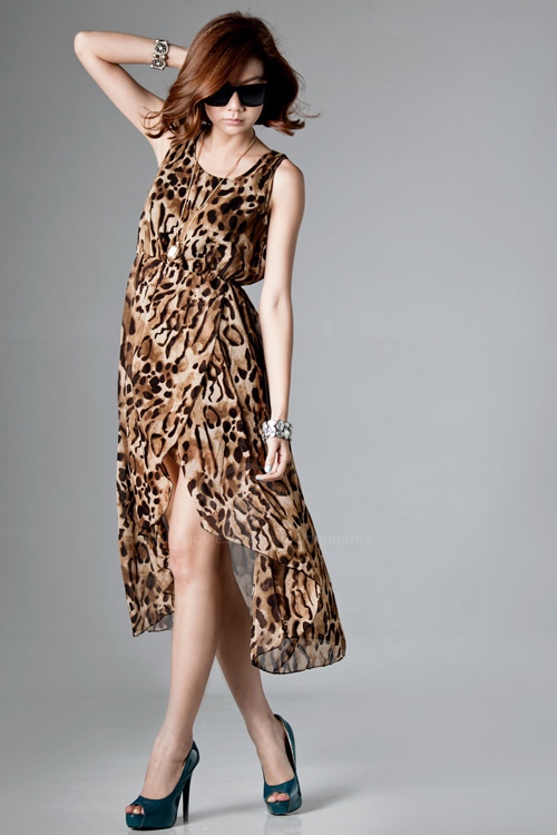 This Sleeveless Leopard Print High Low Chiffon Dress has a round neckline and is sheer and pretty Only available in Ladies Small This would be perfect for a teen or petite lady, for cruise wear or a casual wear Size : Ladies Size Small Bust: up to 84 cm (33") Waist: up to 56 - 76 cm (22" - 30") Length: 103 cm (40.5") Colour: Leopard Print as shown Fabric: Chiffon