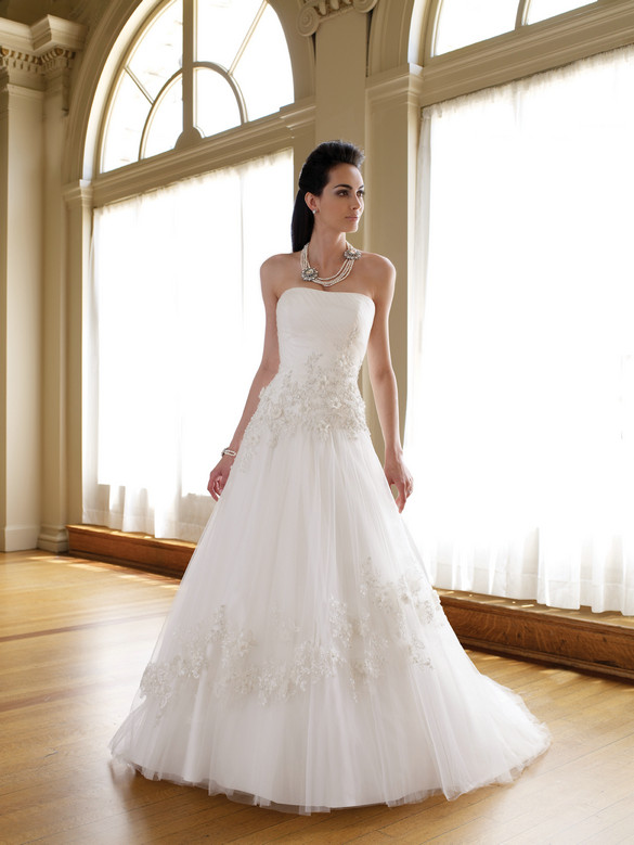 Strapless Embroidered Tulle over Satin Bridal Gown