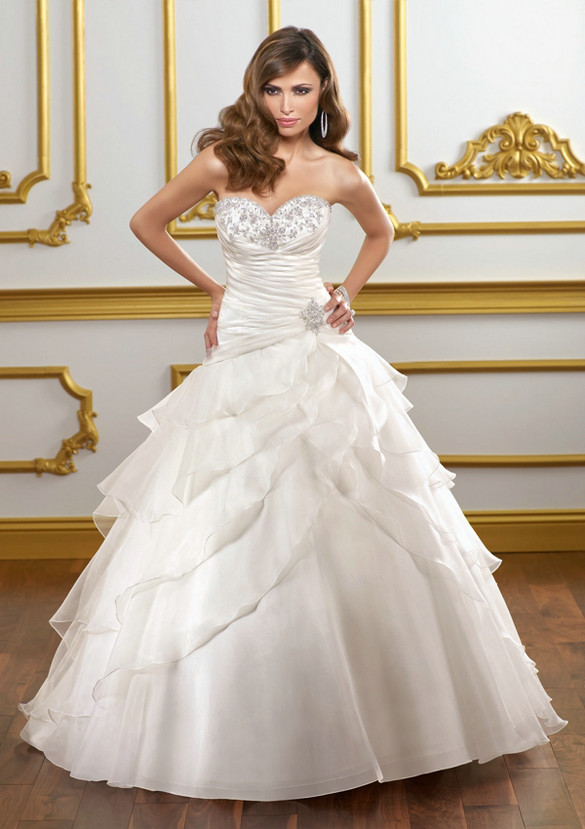In this Strapless Organza Wedding Ballgown with sweetheart neckline and ruched bodice with embroidery on Organza, and dropped waist design, you will look and feel like a Princess, this beautiful gown is adorable! This lovely Cinderella Ball Gown is flattering and feminine - your Wedding Fairytale can come true in this beautiful fantasy Wedding Ball gown You look radiant in your under $400.00 bargain Wedding Gown, and your Wedding guests will think you paid $3,000.00 at Kleinfeld's in Manhattan to say "Yes to the Dress!" Shape Style: Ball Gown Ganske organza kjole for bruden, Mori Lee, bastante sin tirantes de organza vestido para la novia, Madeline Gardner, bella senza spalline abito organza per la sposa, 1806, ziemlich Liebsten Brautkleid für die Braut Brides who purchased this gown, also liked ...