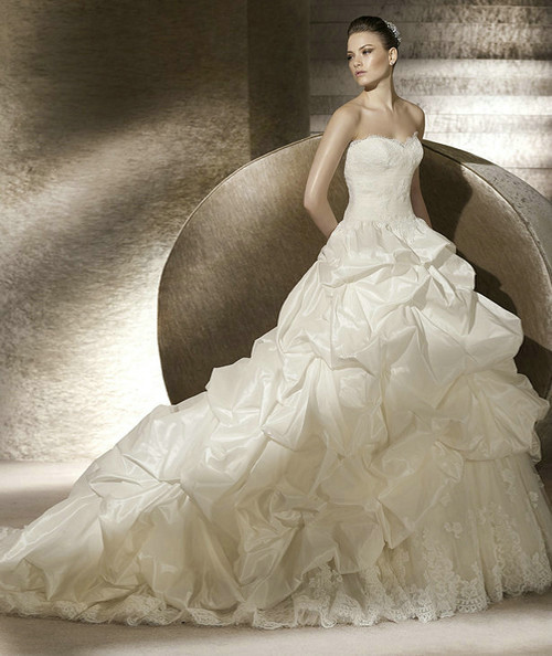 Strapless Taffeta and Lace Ballgown Style Bridal Gown