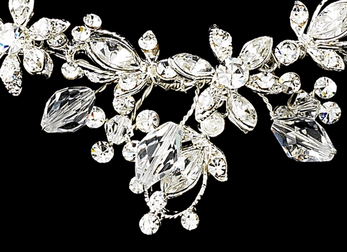 The Swarovski Crystal Duchess of Essex Tiara Set is a dainty and charming Wedding Necklace, Tiara and Earrings Set which has sparkling Crystals in an elegant floral design This would be a lovely accessory for a classic or traditional Bride and is certain to become a timeless family heirloom This pretty Crystal set would be charming with a White or Ivory Wedding Gown, the perfect jewellery for a Sweetheart neckline, spaghetti straps or strapless gown Available: Silver-tone only Brides who purchased this, also liked .....