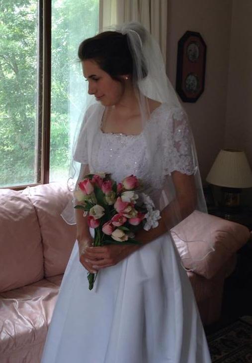 Sweetheart brand Short Sleeve Wedding Gown with Train for rent - size 10