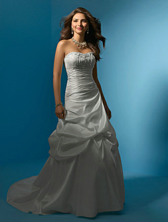 This Taffeta and Lace Strapless Wedding Dress is feminine and lovely with dainty pickups this simple and sweet ballgown would be ideal for a casual or formal wedding Shape Style: Ball Gown Style Neckline Style: Strapless / Modified Sweetheart Brides who purchased this gown, also liked ...
