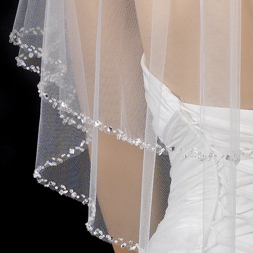 The Vienna Double Layer Bridal Veil is a beautiful double layer elbow length wedding veil with a sparkle edge, which would compliment a wedding dress with beading or crystals on the bodice This fairytale veil is delicate and feminine, and would look beautiful worn over the face as you walk down the aisle, and then worn off the face for the wedding ceremony Colors: White, Ivory Length: Elbow Length, Approx 25" x 30" long x 72" wide Material: Tulle Layer: 2 Layer Vel d'encant per a la núvia, hübsche Braut Schleier, véu de noiva encantadora, matrimonio velo di charme, Bridal Veil semplice, вуаль для невесты с бисером кристалла, magsuot ng belo para sa bride sa kristal biding, velo de novia con abalorios de cristal, voile de mariée avec perles de cristal, véu de noiva com perolização de cristal Brides who purchased this, also liked .....